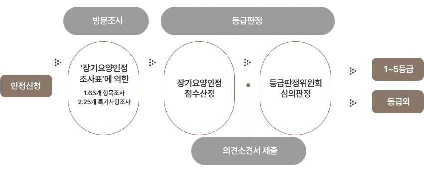 장기요양보험 가입자 및 그 피부양자나 의료급여수급권자 누구나 장기요양급여를 받을 수 있는 것은 아닙니다. 일정한 절차에 따라 장기요양급여를 받을 수 있는 권리(수급권)가 부여되는데 이를 장기요양인정이라고 합니다.